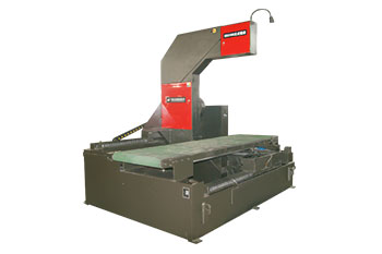 帶鋸機(jī)是在兩個(gè)鋸輪上張緊的圓鋸帶,由鋸輪帶動鋸帶進(jìn)行切割。帶鋸床根據(jù)鋸架的設(shè)置不用可以分成立式和臥式兩種。立式帶鋸床的鋸架垂直設(shè)置,工件在切割時(shí)移動,用于切割鈑金和成形零件的曲線輪廓,如果要進(jìn)行修銼或打磨,鋸帶應(yīng)換成銼鏈或砂帶的。臥式帶鋸床的鋸架水平或傾斜布置,為了保持鋸齒與工件垂直,使用時(shí)沿垂直方向或繞一支點(diǎn)擺動的方向進(jìn)給,鋸帶一般扭轉(zhuǎn)40°。臥式又分為剪刀式、雙立柱、單立柱式帶鋸床;根據(jù)使用情況分為手動型和自動型;根據(jù)自動化程度不同可分為手動型和全自動型。