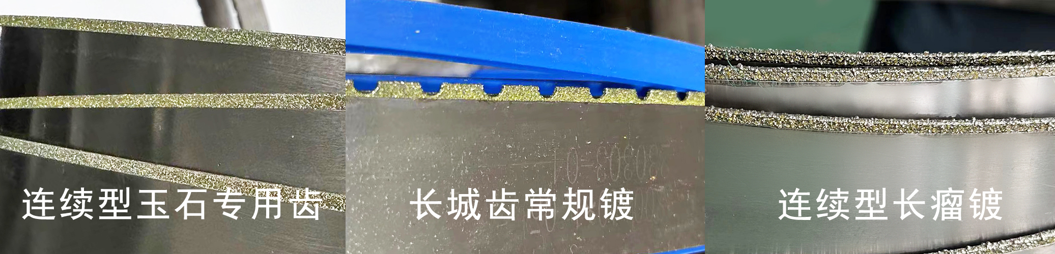 金剛砂帶鋸條常用齒型有:長城齒、長城齒長瘤鍍、間斷齒、連續(xù)齒、連續(xù)齒長瘤鍍、連續(xù)半圓齒、連續(xù)型玉石專用齒等。