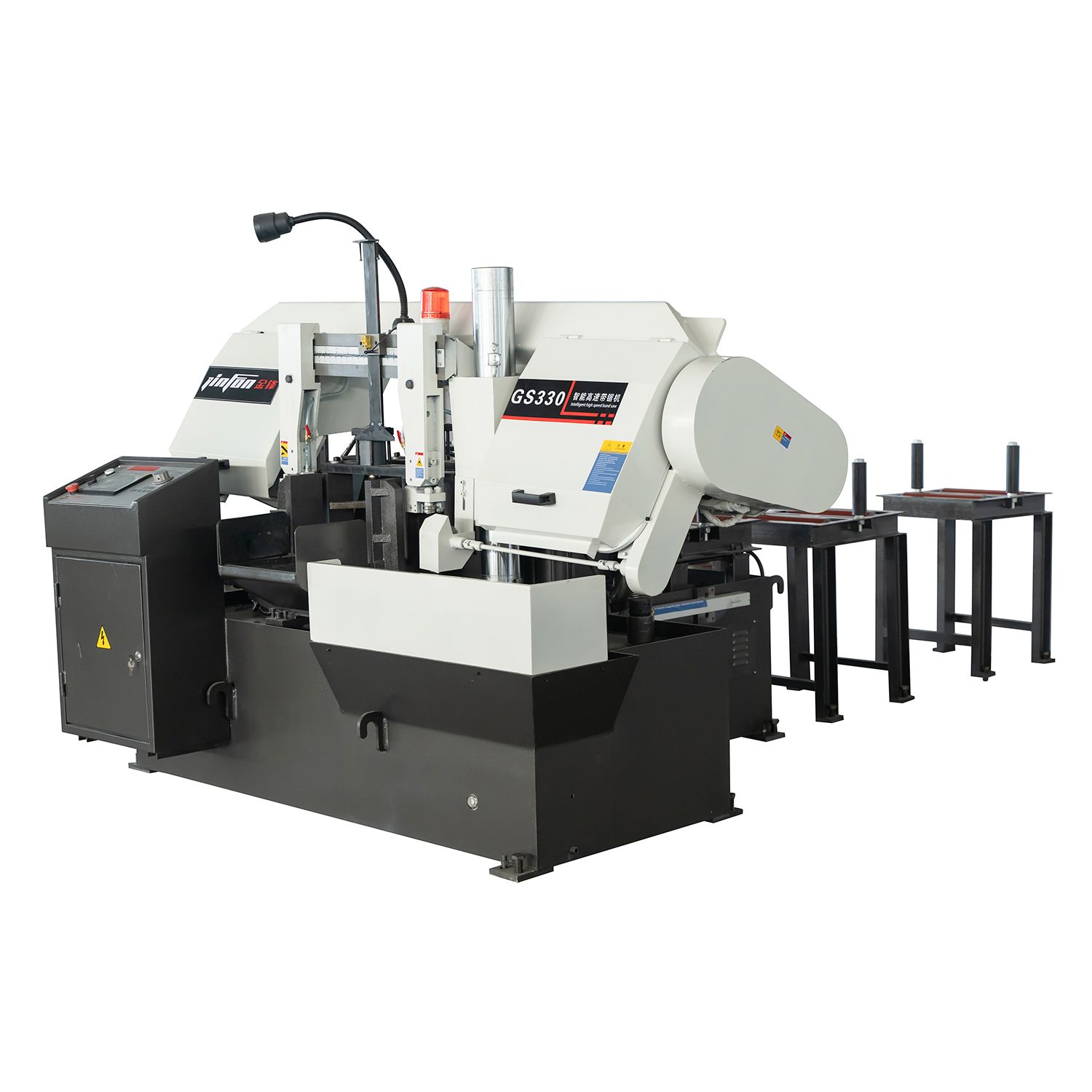 金鋒鋸業(yè)生產(chǎn)的GS330為臥式結(jié)構(gòu)、PLC控制、智能全自動(dòng)數(shù)控系統(tǒng)、彩色觸摸屏操縱,GS330智能數(shù)控帶鋸床的多模式智能人機(jī)界面取代了傳統(tǒng)按鍵,可自由調(diào)節(jié)手動(dòng)與自動(dòng)雙功能選擇、自由調(diào)整鋸切參數(shù)、自由選配任意長(zhǎng)度料架,GS330智能數(shù)控帶鋸床采用光柵尺控制送料,可增加激光切割線指示器,鋸床的定位精度高、切割精度高、切割效率高,自動(dòng)批量切割效率是手動(dòng)的4倍以上。