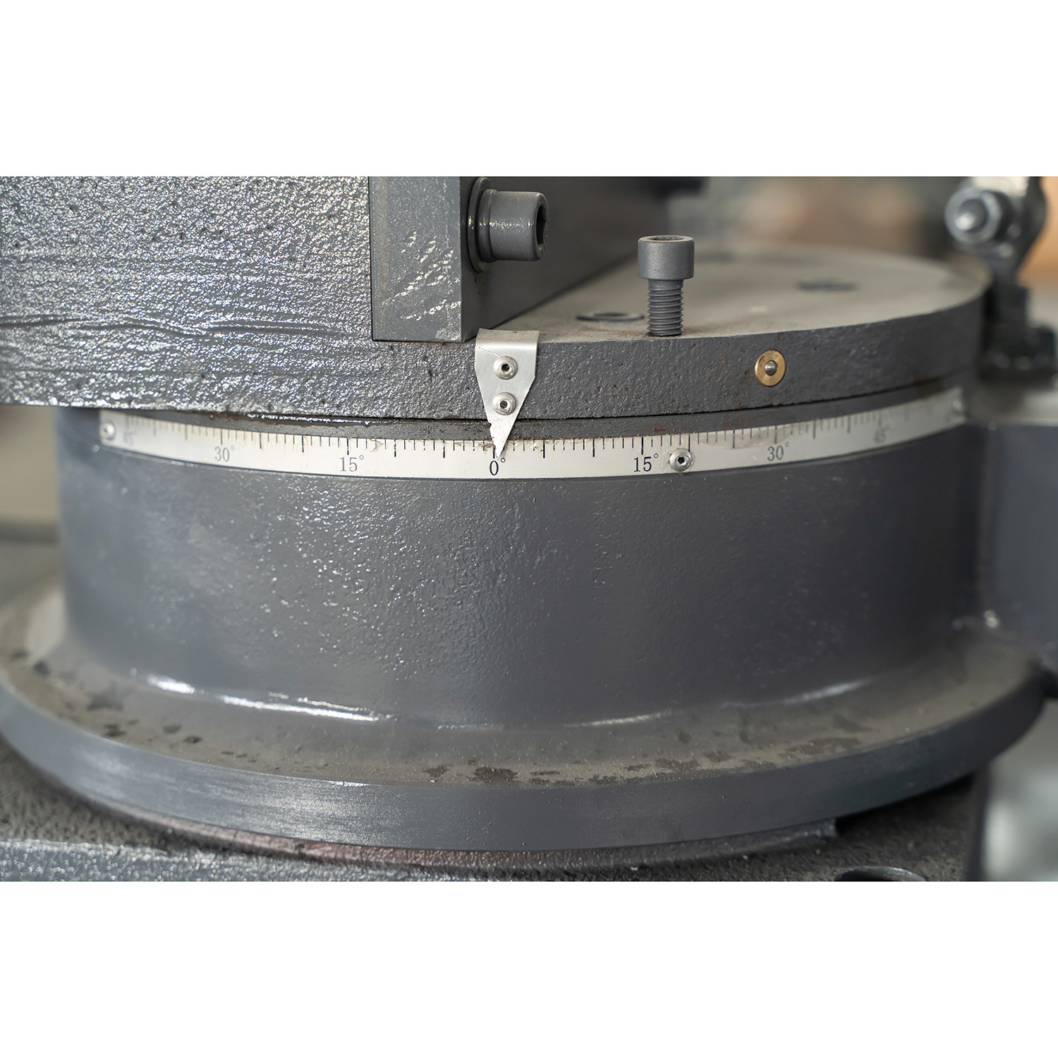 2、G-330(臥式剪切式角度帶鋸床):鋸切范圍0°~ +45°~ -60°,圓形工件最大鋸切330×330mm長寬,方形工件最大鋸切460×305mm長寬。