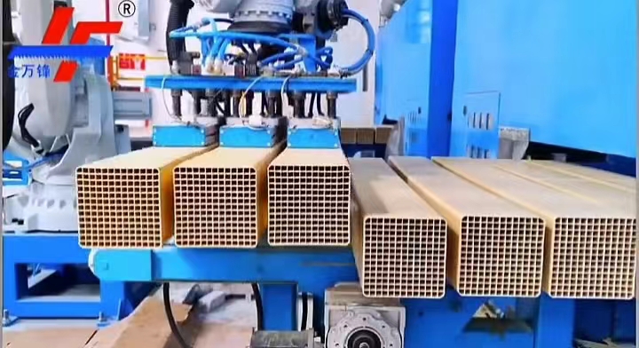 針對此類材料切割,金鋒鋸業(yè)建立了催化劑定制帶鋸床生產線,不同公司生產的脫硝催化劑外形尺寸不同,在生產過程中常常需要鋸切輔助,催化劑切割定制鋸床現生產線完整,技術成熟,對方形催化劑、蜂窩式脫硝催化劑、陶瓷管脫硝催化劑、不規(guī)則形狀脫硝催化劑等類似產品的鋸切效果非常優(yōu)越。催化劑定制帶鋸床支持半自動或智能全自動切割雙模式操作,客戶采購成本不同,可以根據客戶的需求量身打造。催化劑定制帶鋸床提供了對單一、成捆催化劑的精準取料、送料、定位的工序,也可以配合客戶自有的生產線或替代傳統(tǒng)流水線,大大壓縮生產成本,催化劑定制帶鋸床還可以集中廢料處理,安全環(huán)保,全程自動,節(jié)省人力成本。