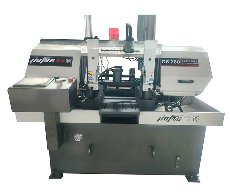 濟(jì)南北方金鋒鋸業(yè)有限公司是一家專業(yè)生產(chǎn)帶鋸床、帶鋸條的非標(biāo)定制鋸床廠家,金鋒鋸業(yè)現(xiàn)有的數(shù)控帶鋸床型號有GS260帶鋸床、GS280帶鋸床、GS330/400/500帶鋸床等,這些數(shù)控鋸床都采用PLC控制系統(tǒng),可設(shè)置一組或幾組連續(xù)切割,適用于批量生產(chǎn)的大型廠家。配有彩色觸摸屏,直觀簡潔,可快速上手。采用光柵尺控制送料長度,精度高。切割平穩(wěn)噪音小,切割出來的材料光滑無毛刺、廢料少。其中GS280帶鋸床為剪切式結(jié)構(gòu),鋸架可旋轉(zhuǎn)0-45°。GS330/400/500帶鋸床為雙立柱結(jié)構(gòu),更加穩(wěn)定。