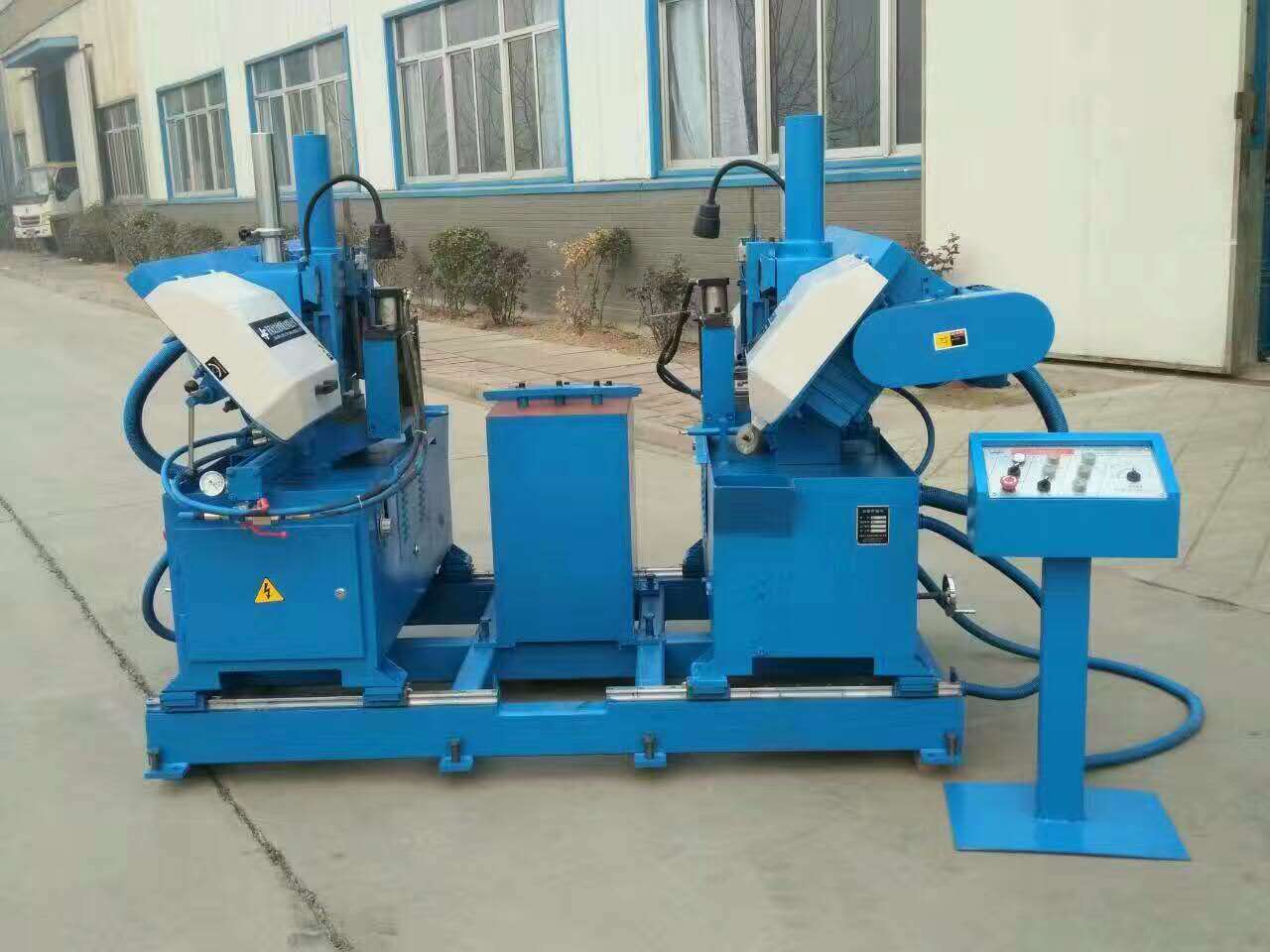 2、雙鋸條設(shè)計(jì),工作臺定位工件,兩機(jī)頭同時(shí)往中心切,一次切割成型,效率高!
